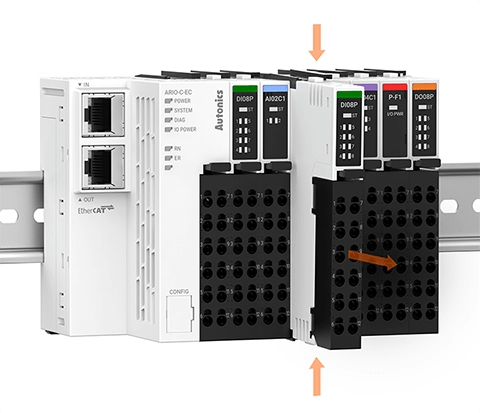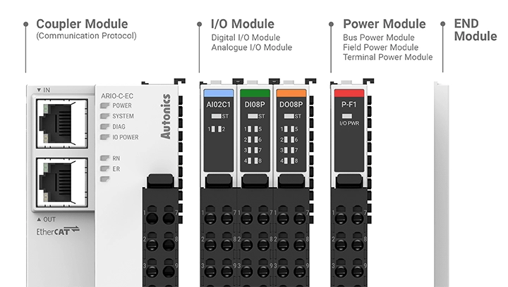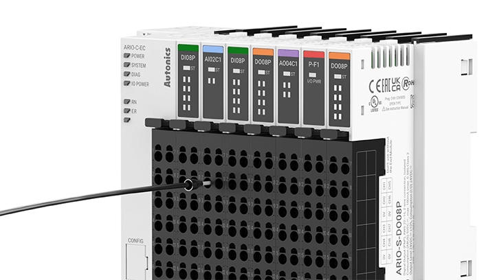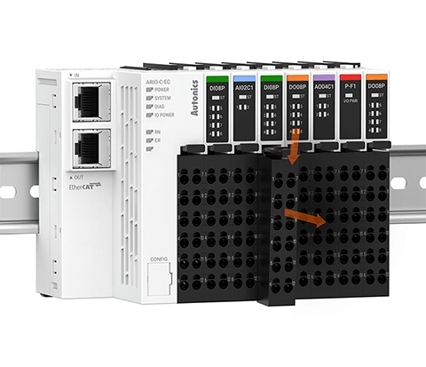 ARIO系列超薄型远程I/O提供以太网/现场总线通信I/O接口,可在各种I/O类型中模块化扩展至64个单元。 耦合器模块具有各种通信协议。推入式连接方法提供简单易行的接线,以提高用户便利性。 热插拔功能允许模块的终端单元和主体(控制)单元,无需停止供电或停止通信,也可与基座(通信)单元断开连接, 以便于维护。