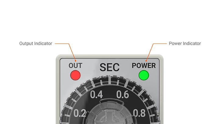 计时器配有输出指示灯(红色LED)和电源指示灯(绿色LED)