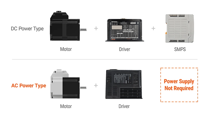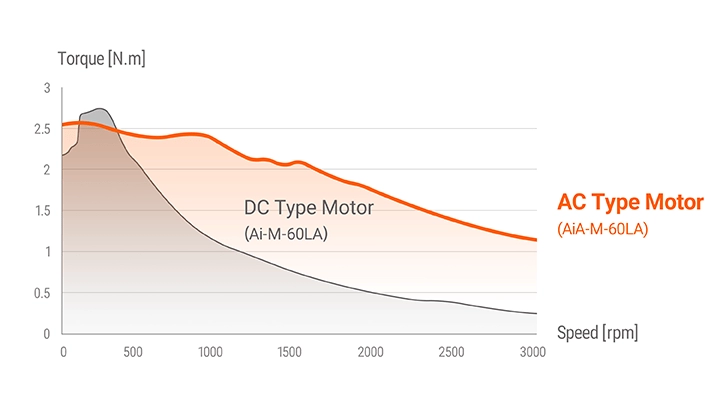 与DC型电机相比,AC电源型闭环步进电机系统可以在高速驱动期间保持更高的扭矩。电机也不需要单独的电源,允许更灵活的安装选项。