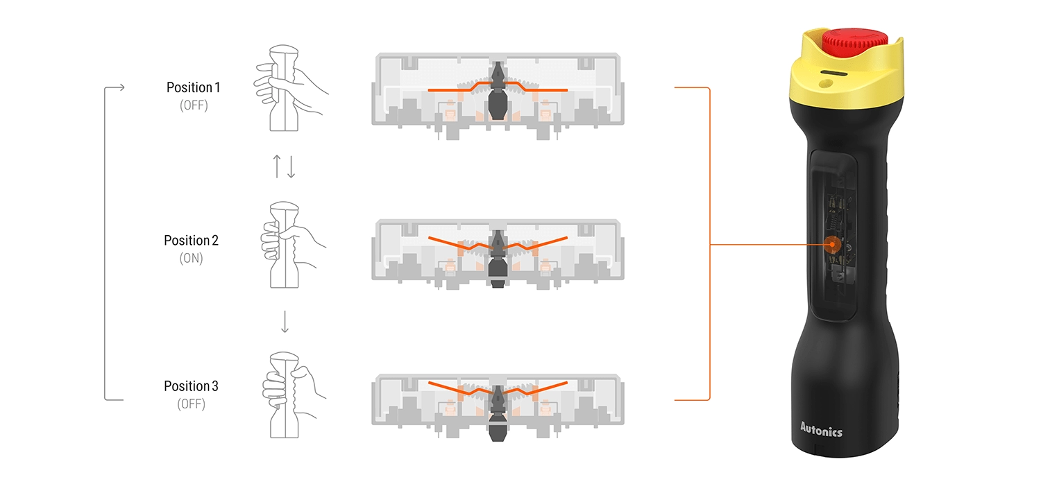 启动开关通过3档速动提供高操作灵敏度,符合人体工程学的设计允许轻松单手操作。