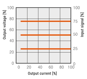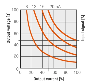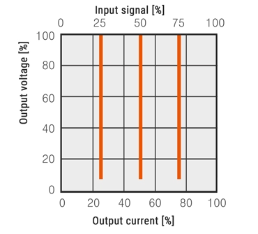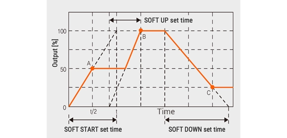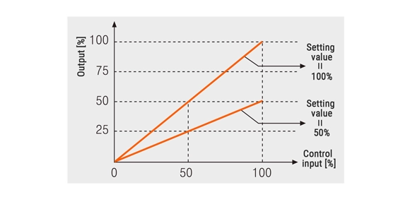 限制负载的电源,使[控制输入(%) x 输出ADJ(%)=输出值]。即使控制输入为100%,如果输出ADJ值设置为50%,输出仍将保持在50%。