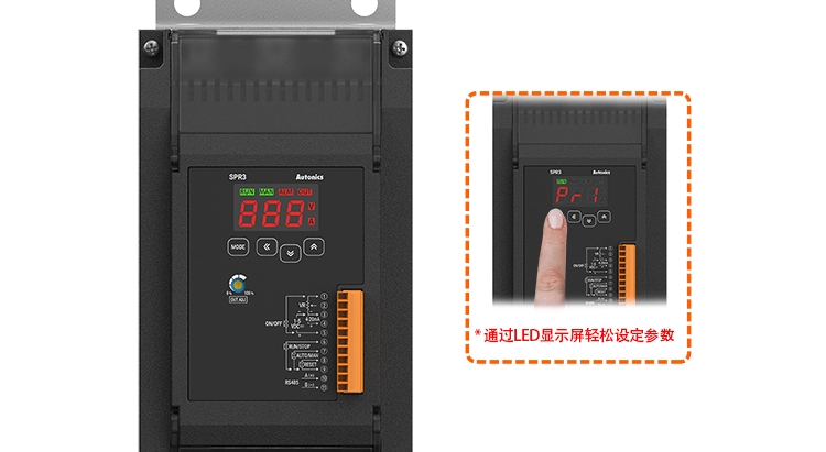 3位7段LED显示屏可实现对控制输入,负载电压,负载电流,负载功率,负载电阻,电源电压,频率,散热片温度的实时监控,也可进行参数的设定。无需连接外部显示设备,提高了使用便利性,节约安装空间。
