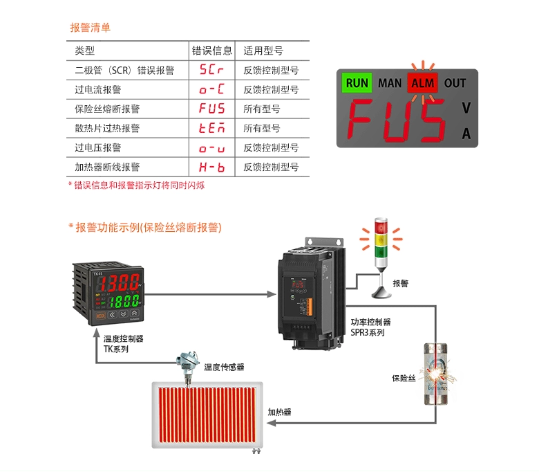 过电流, 过电压, 加热器断线, 保险丝断线, 散热片过热, 二极管(SCR)错误 - 安装支架易于安装
